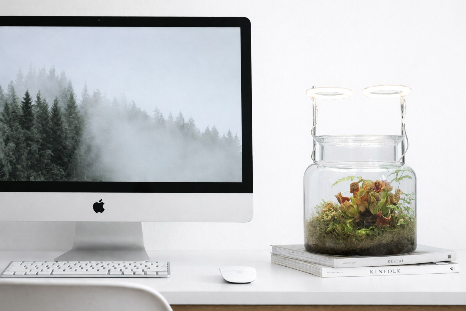 A living ecosystem, sealed in hand-blown glass. Includes a grow light. Zero maintenance, infinite calm.